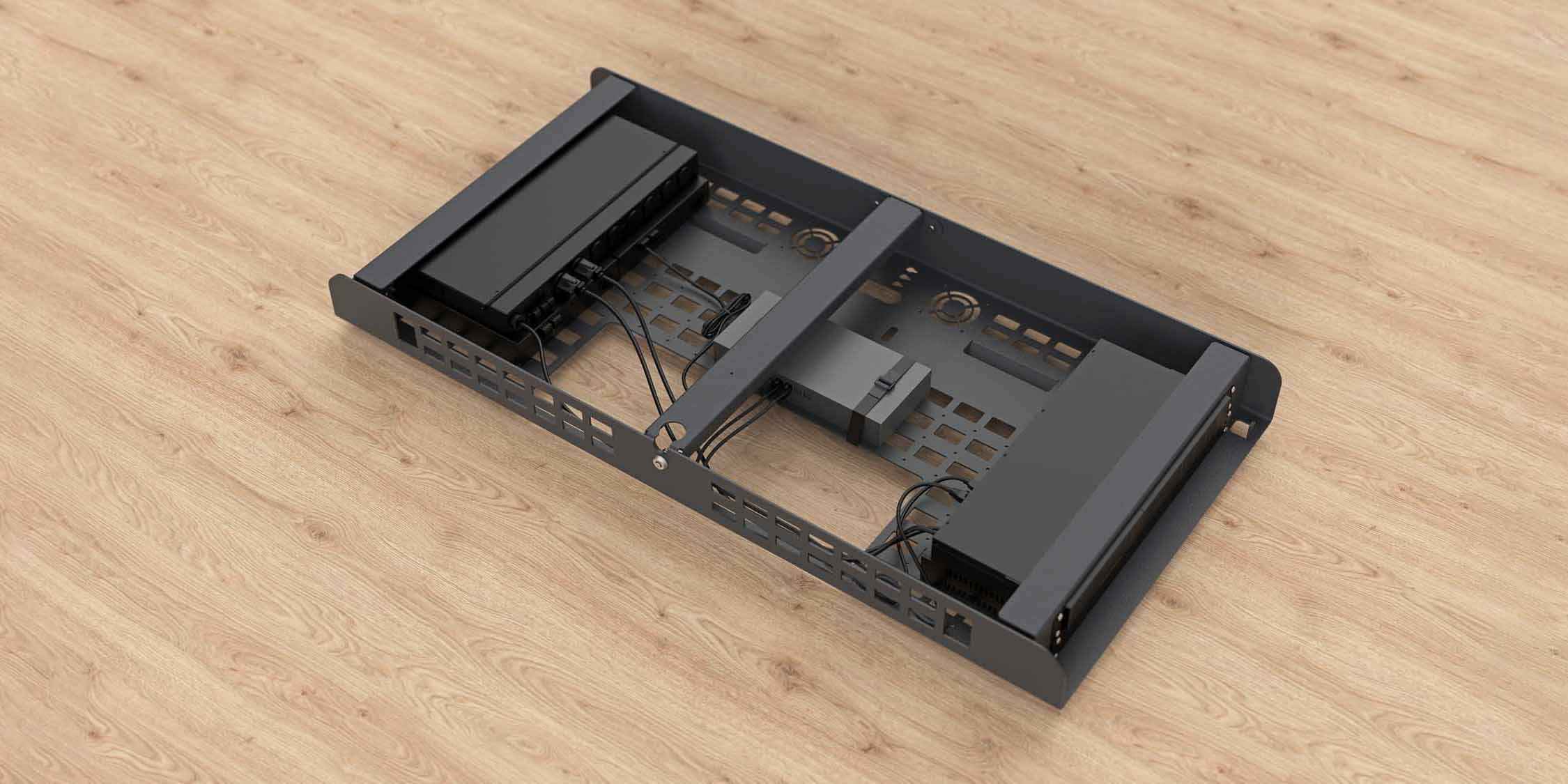 Why spend a day rigging a room? With Heckler AV Credenza you can load, configure, organize, and test your setups from the comfort of a table in your offce. Heckler AV Credenza features tooless small-component mounting, 4RU of 19-inch rack mounting (2RU per side), and easy cable managment. All of your deployments and system maintenance just got easier.