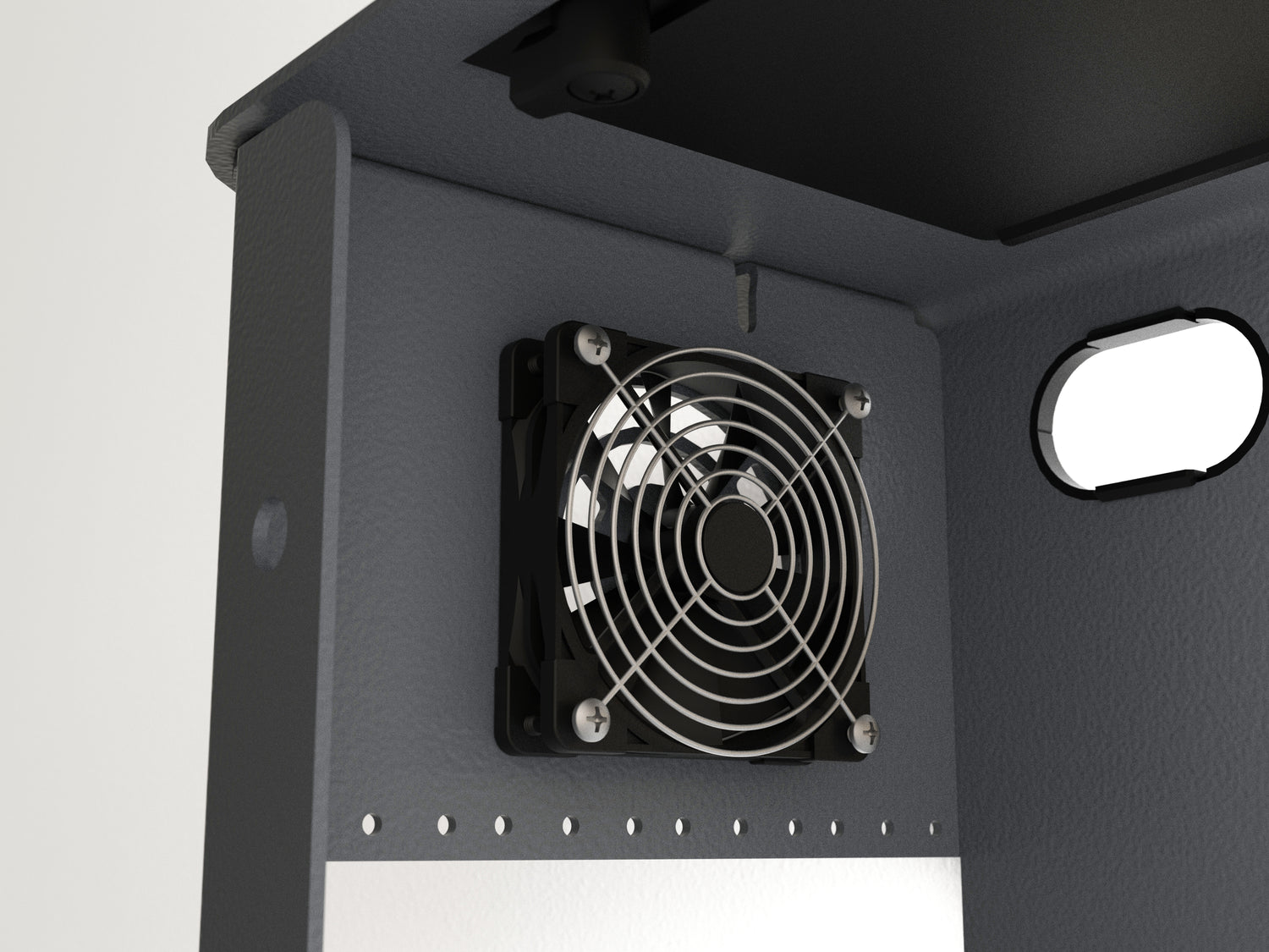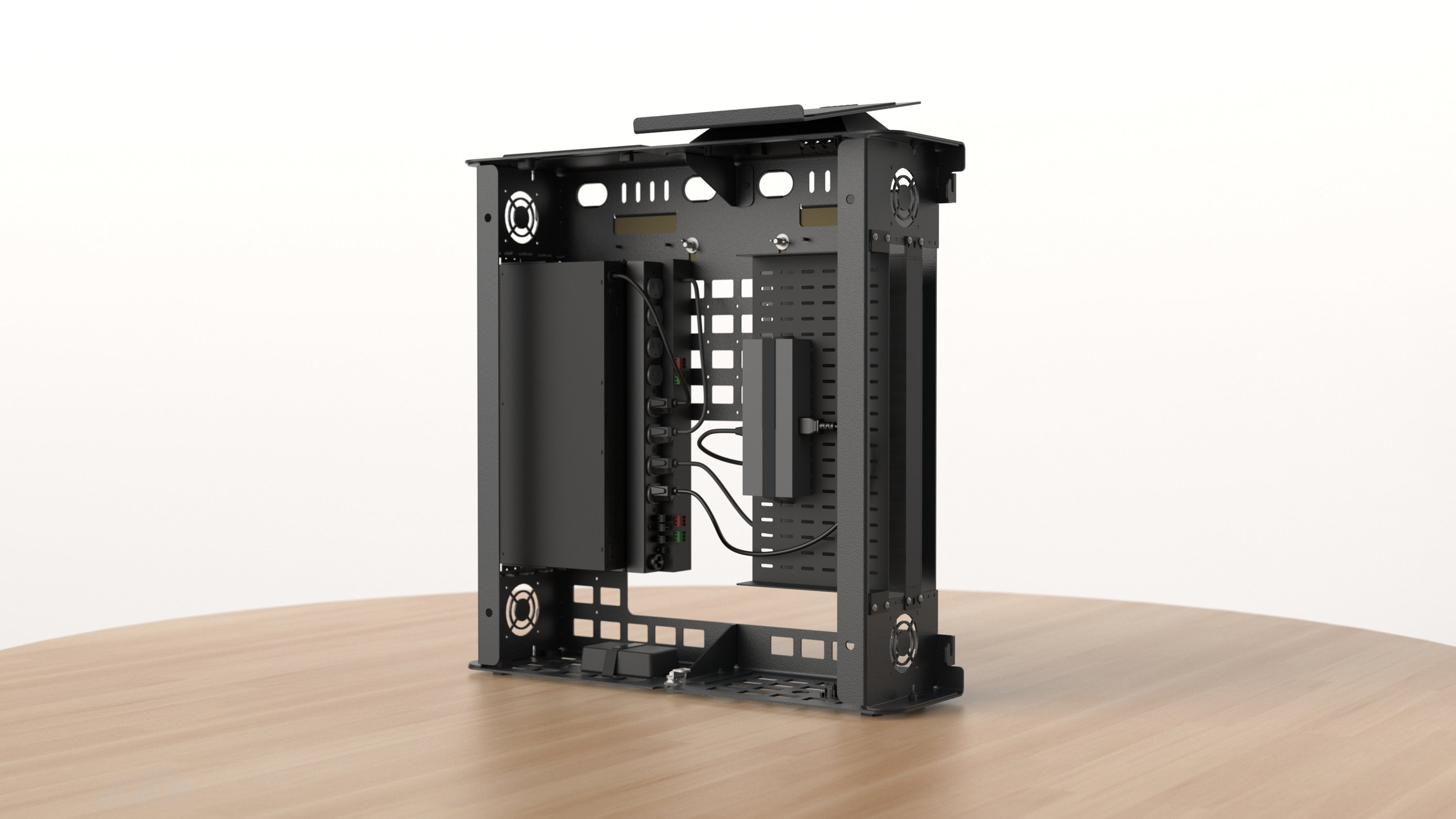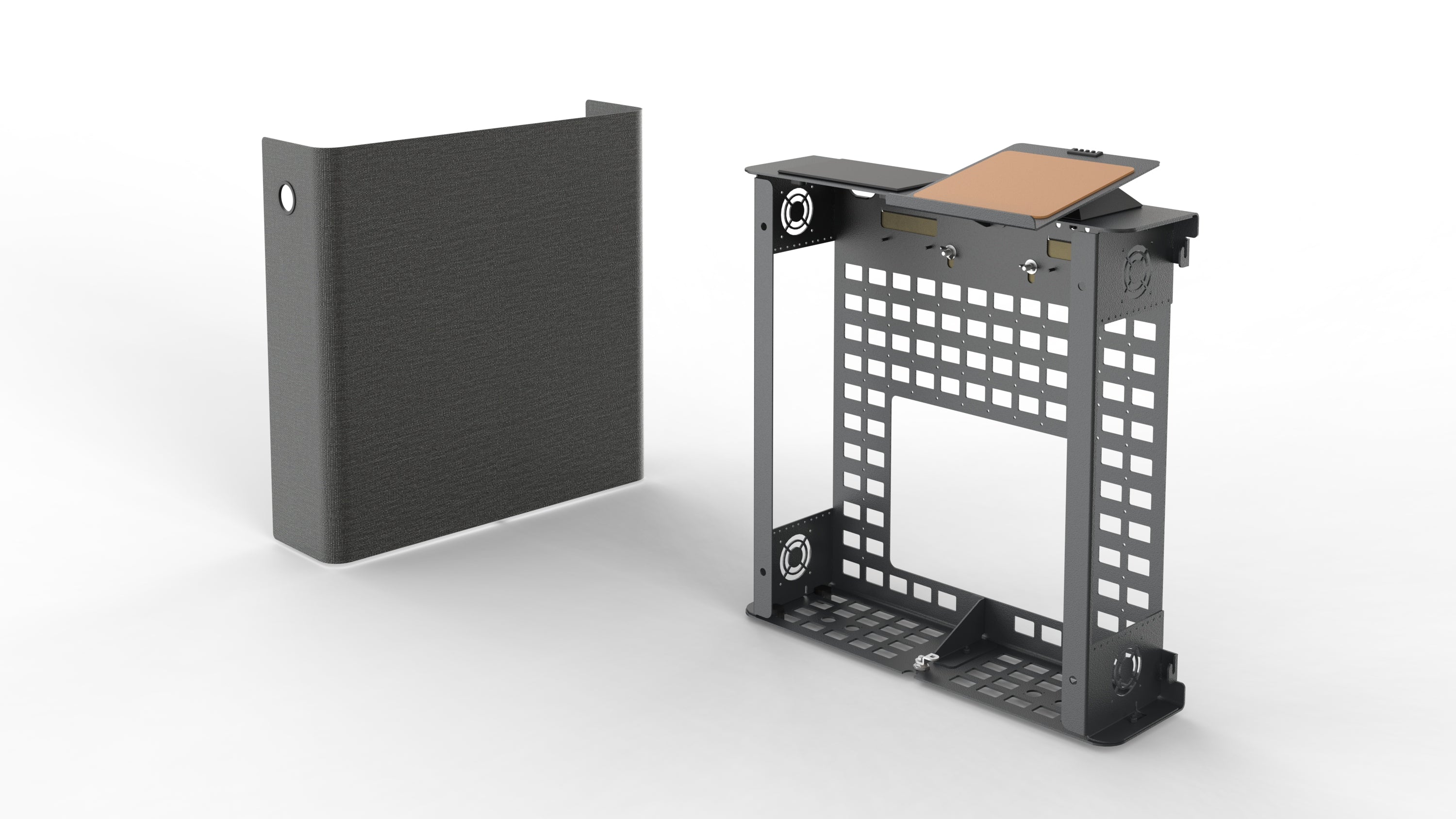 Classroom Credenza is designed for passive heat dissipation, with an open-grid rear surface spaced off the wall that promotes natural airflow. For builds that require extra ventilation, you can mount up to two pairs of your favorite 80mm fans for enhanced cooling.