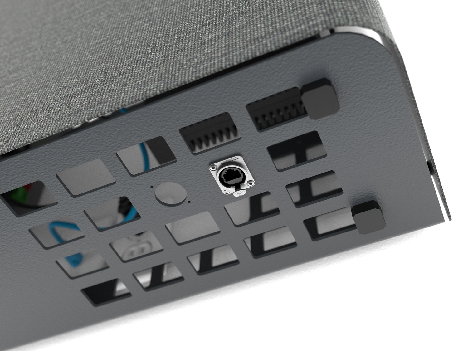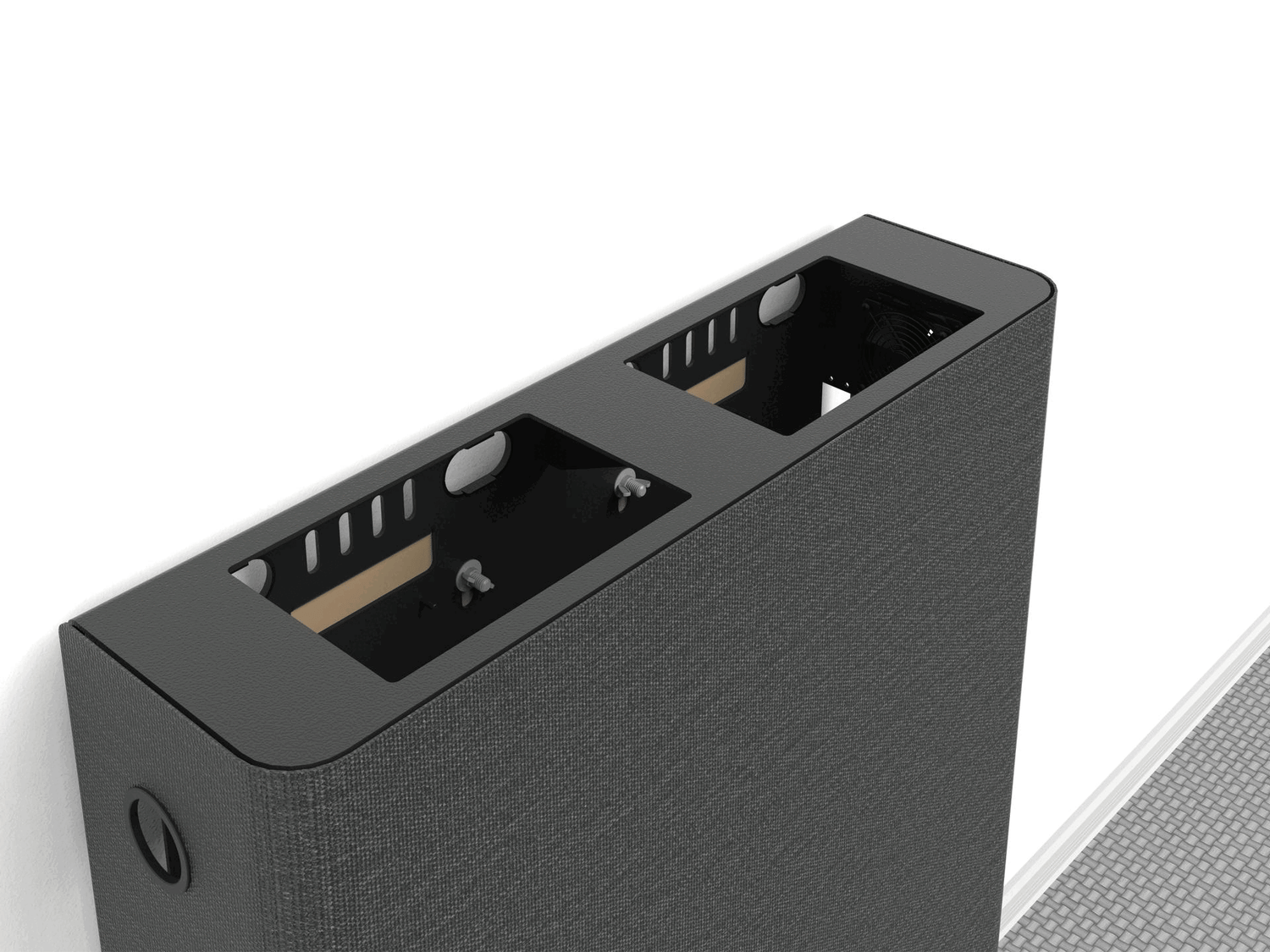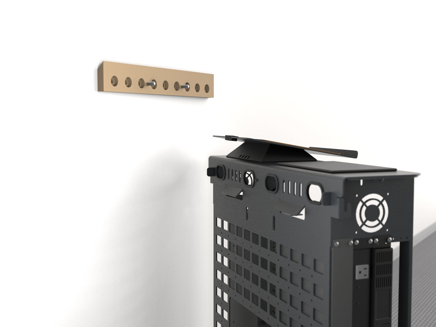 Classroom Credenza is designed for passive heat dissipation, with an open-grid rear surface spaced off the wall that promotes natural airflow. For builds that require extra ventilation, you can mount up to two pairs of your favorite 80mm fans for enhanced cooling.