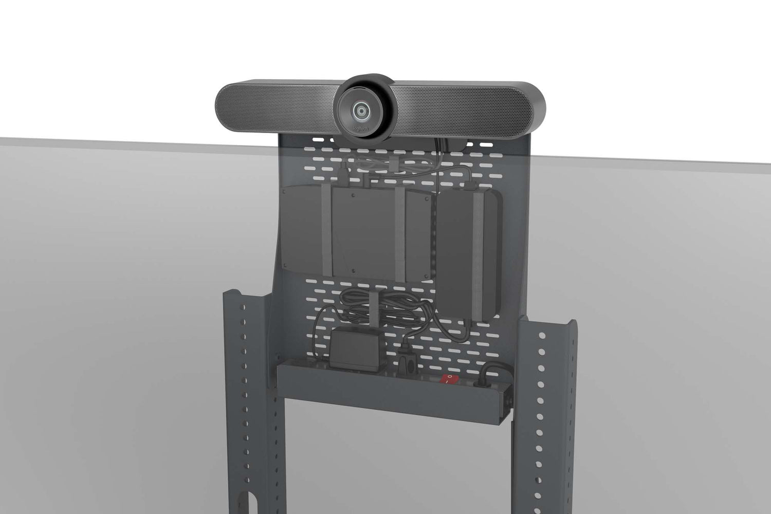 Configure Heckler AV Cart in new and exciting ways with Device Panel. Mount the most popular cameras, conference cams, and appliances above or below your display. Mount and pre-configure your computer, power adapters, and wiring to make mass deployments faster and more efficient.