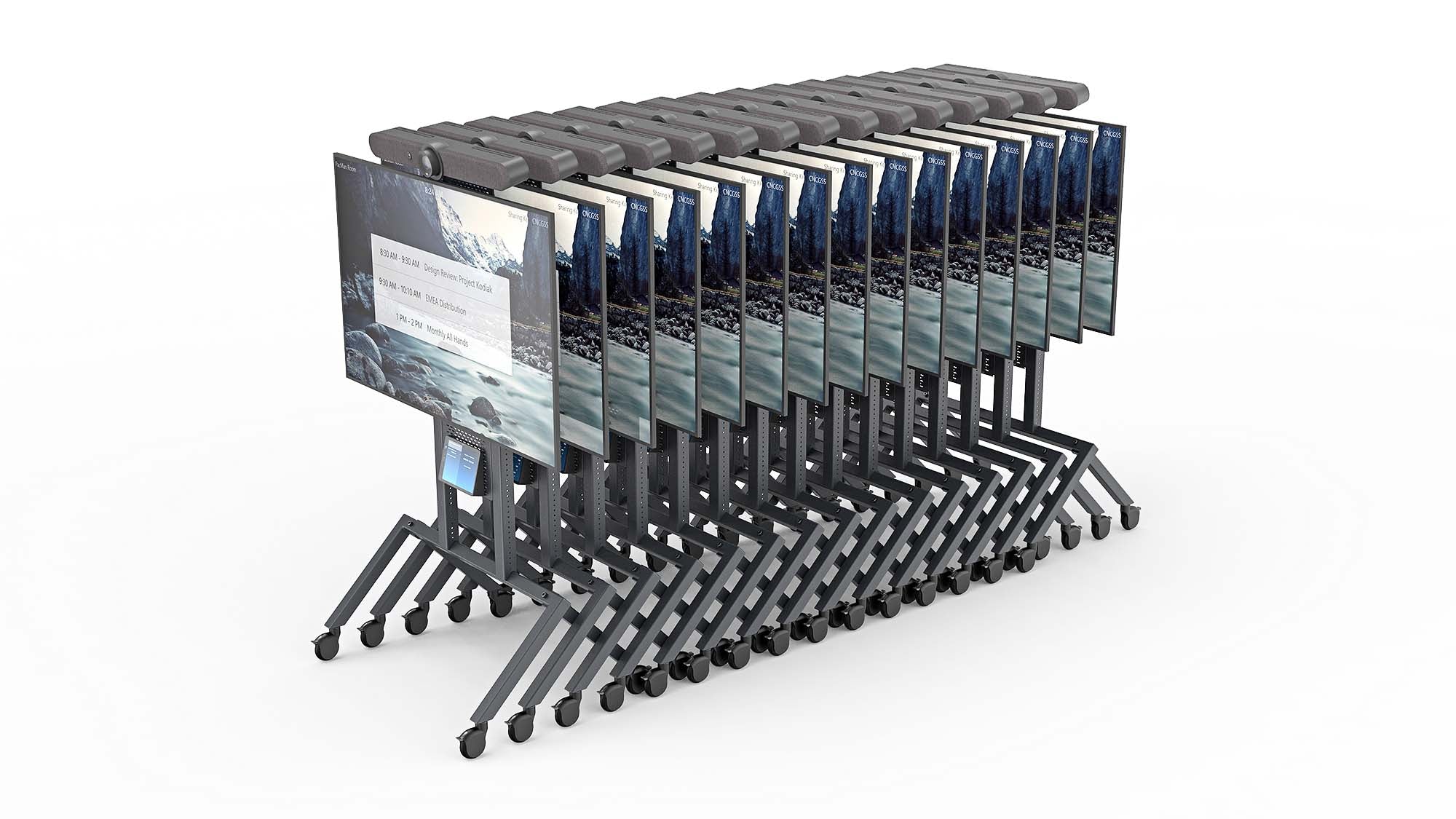 Our patented nesting design is perfect for mass deployments in which resources are shared and floorspace is at a premium. Store a fleet of meeting carts securely then roll them to wherever you need them most.
