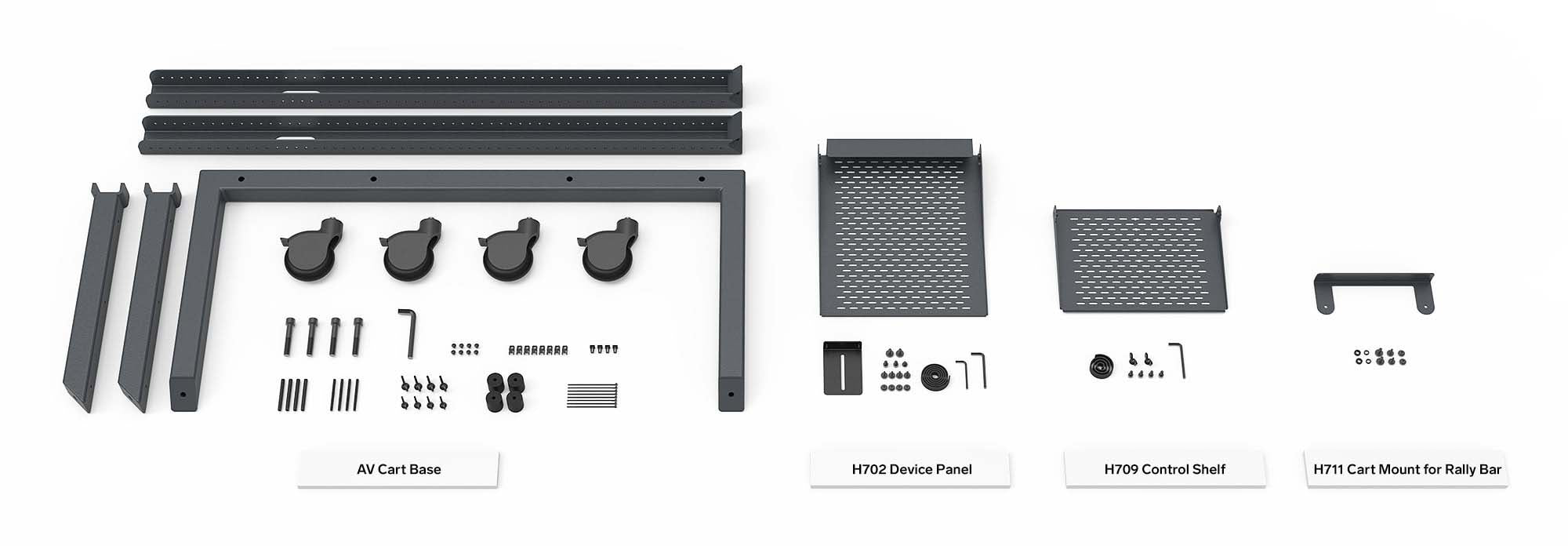 The Rally Family includes two great all-in-one solutions - Rally Bar and Rally Bar Mini. Heckler AV Cart for Rally Bar is built for both.