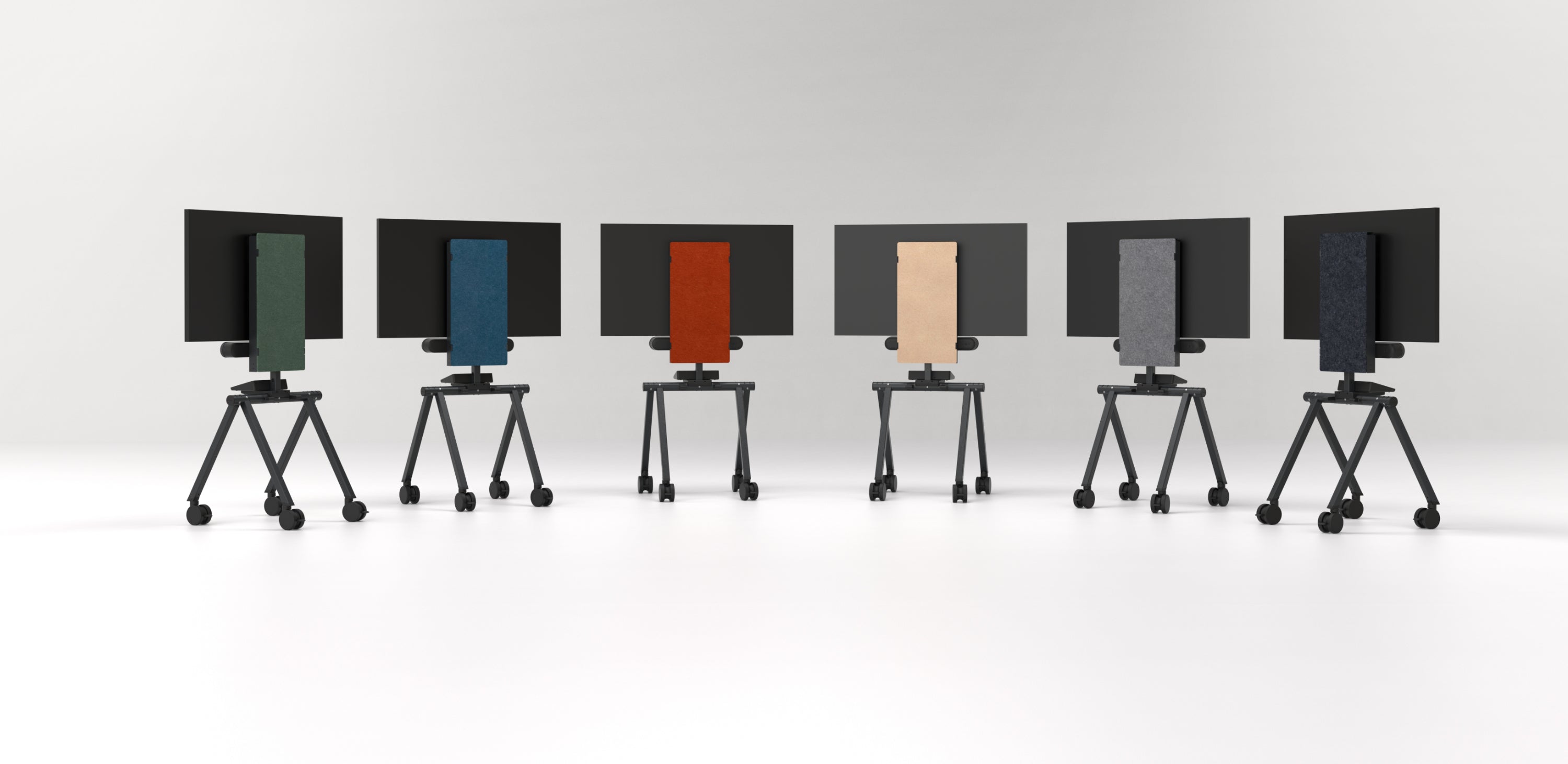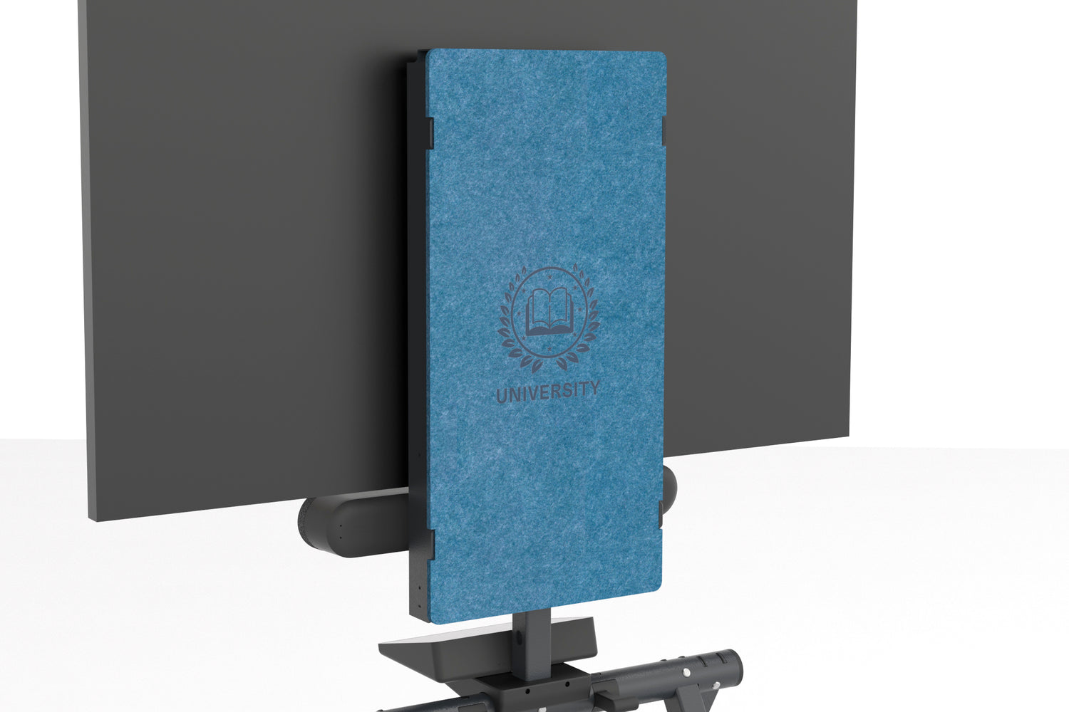 Glass walls make the back of video meeting hardware visible. The rear Felt Right cover comes in 42 colors to complement room design or reflect brand identity. Clean from every angle.