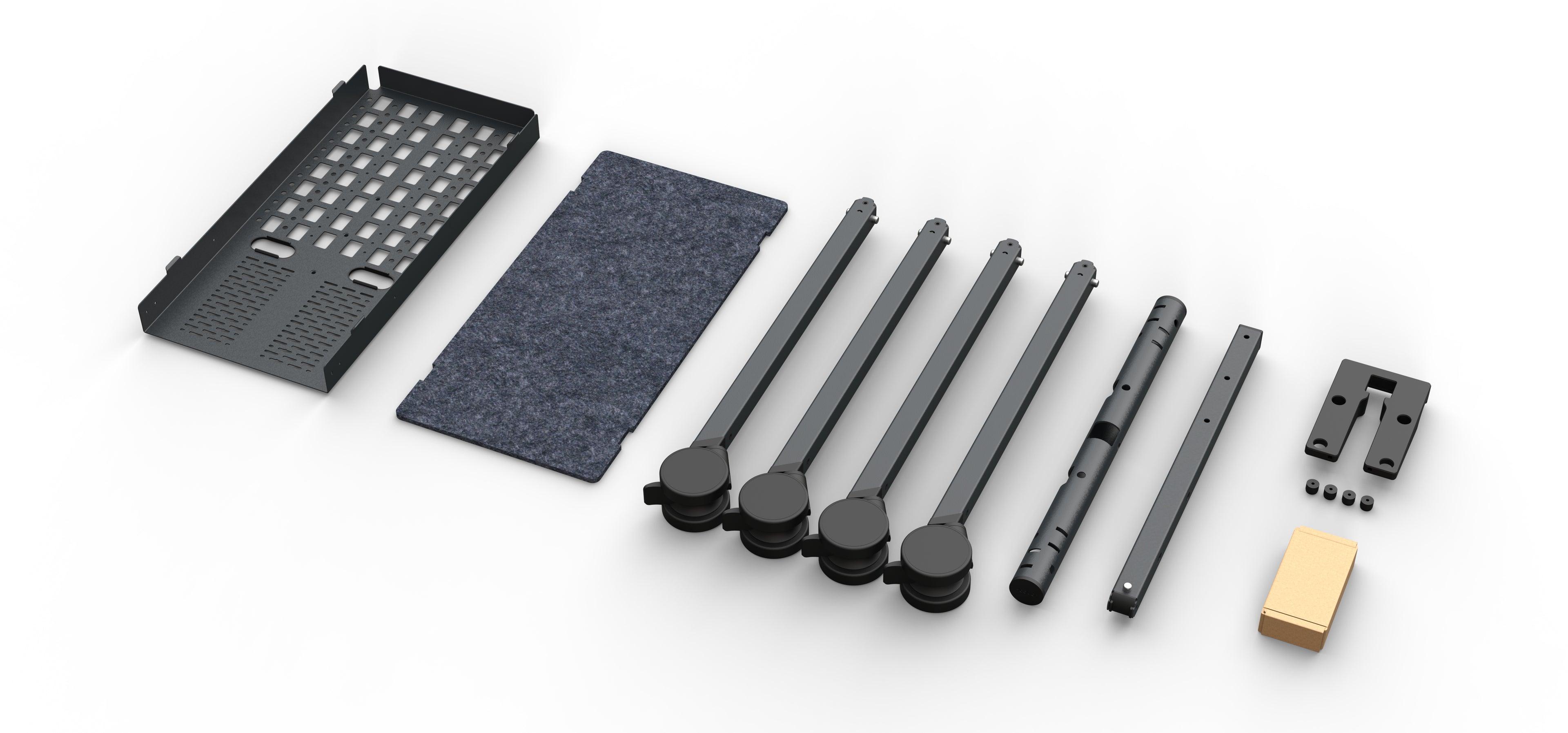 Integrated device panel mounts display, video bar, mini PC, power adapters, and power strip to the back of the stand. Organized. Easy to service. One panel for the complete Teams Room build.