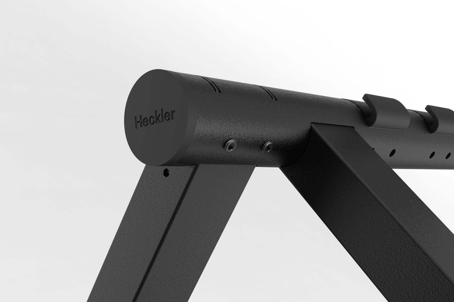 Heckler XL Display Stand MkII enhances our patent‑pending Heckler Connection System with set‑screw locking—creating incredibly rigid connections between legs, columns, and beam. The result is a structure that feels planted and confident, even with today’s biggest, heaviest displays.