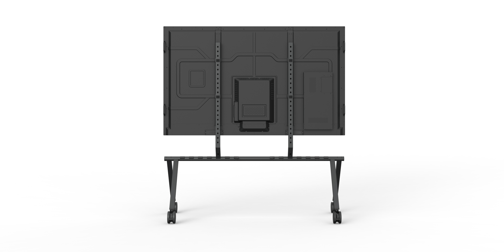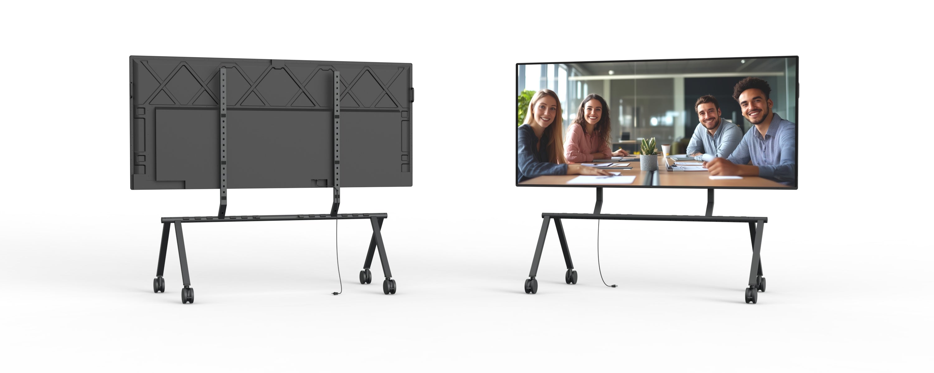 When not in use, multiple stands can be stacked together more compact than any other rolling stand, freeing up valuable floor space. Perfect for event venues, all‑hands meetings, and organizations that share their largest displays throughout the workspace.