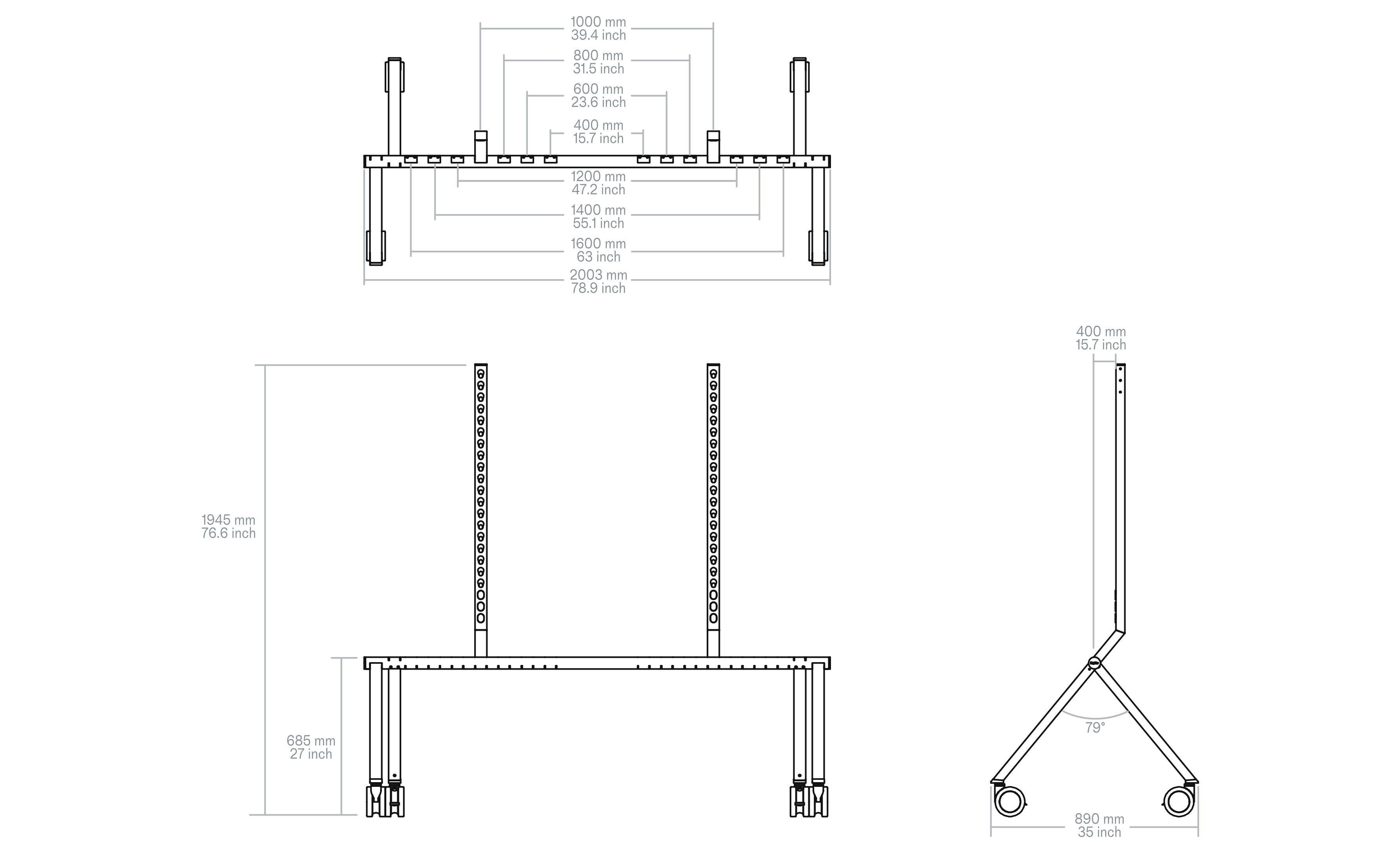 Our adjustable column & beam architecture supports displays with mounting patterns from VESA 400 to VESA 1600. MkII keeps the broad compatibility you rely on—so you can standardize on one rolling stand across a wide range of display brands and models.
