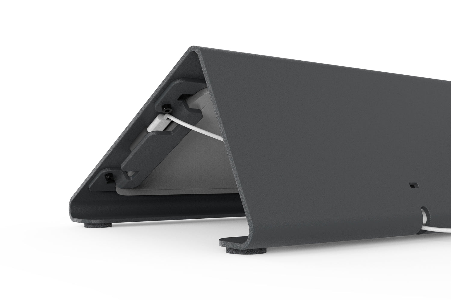 Integrated cord protection features help ensure your iPad stays powered. Simple cable routing enables you to hide power and networking adapters under your table top. And felt feet enables your console to be easily shared with meeting participants without scratching your meeting room table.