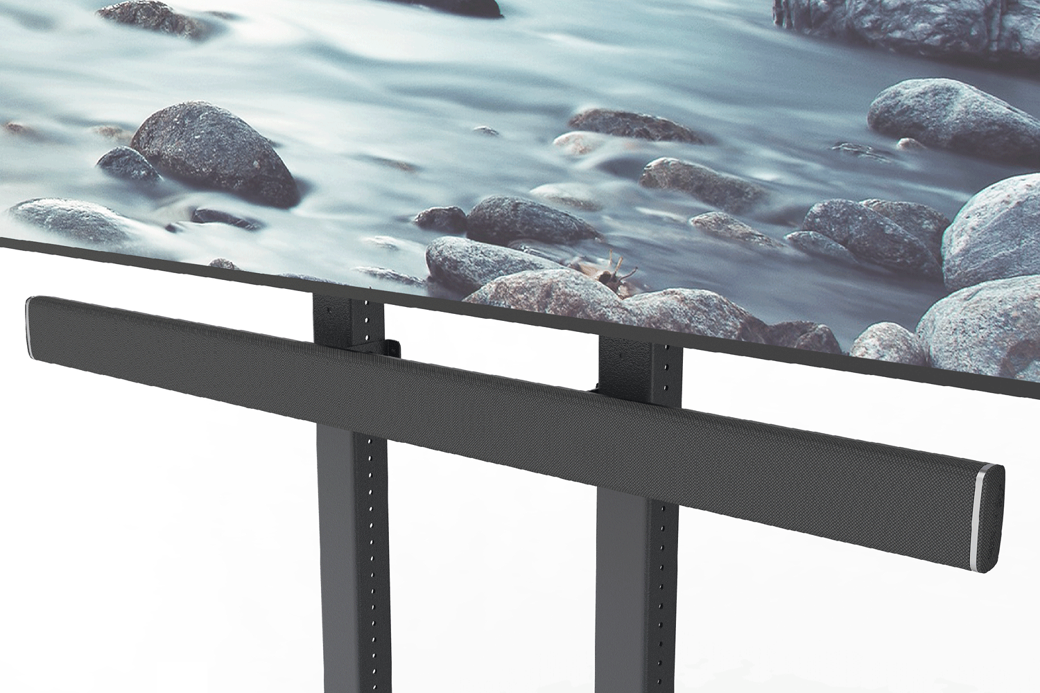 You can finally stop using the display's VESA holes and a wobbly mess of brackets to mount soundbars. With Soundbar Mount, within moments, your device is mounted to the rigid structure of Heckler AV Cart.