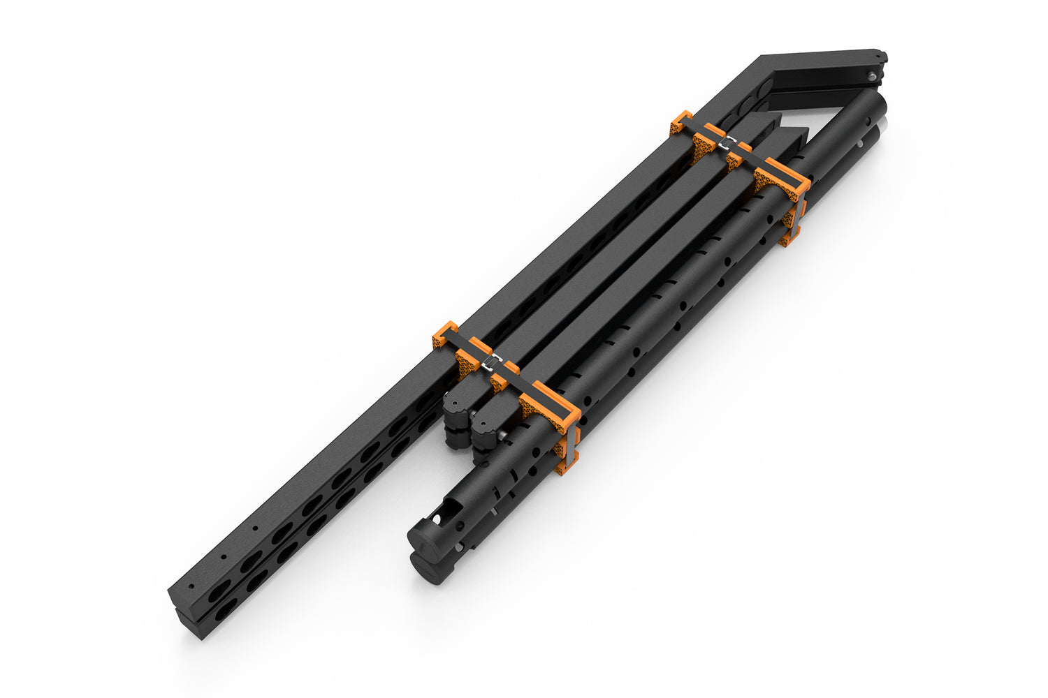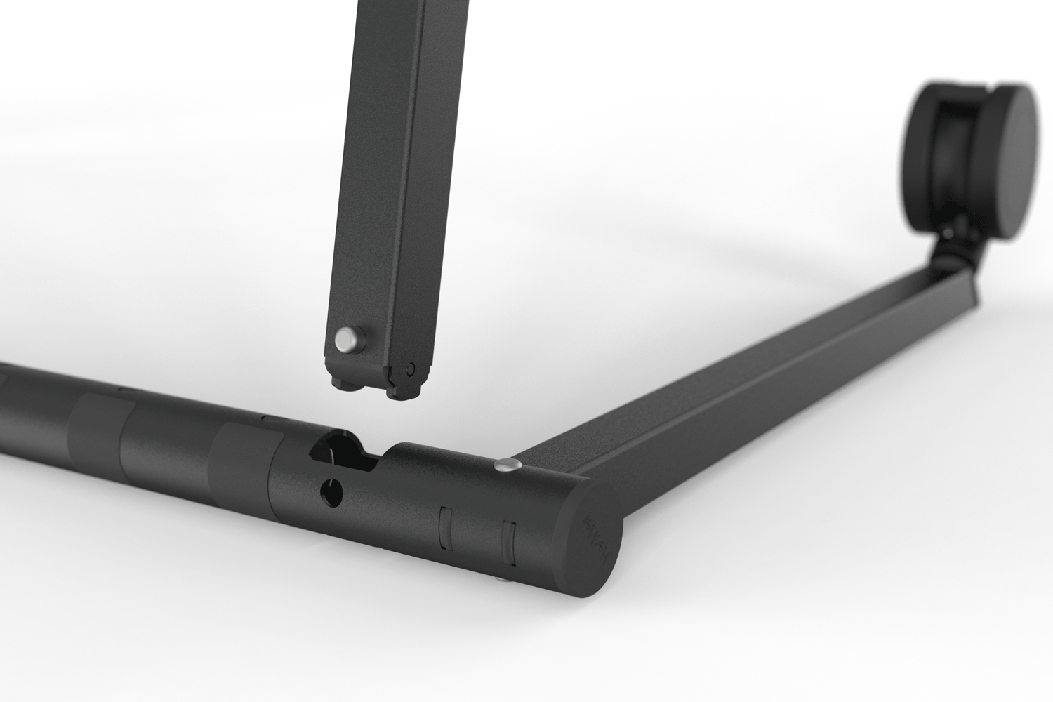 With our patent-pending Heckler Connection System, you can assemble or disassemble the Heckler XL Display Stand, without tools, for a fast setup and load out experience. The completed structure is an incredibly strong assembly of intersecting steel tubes.