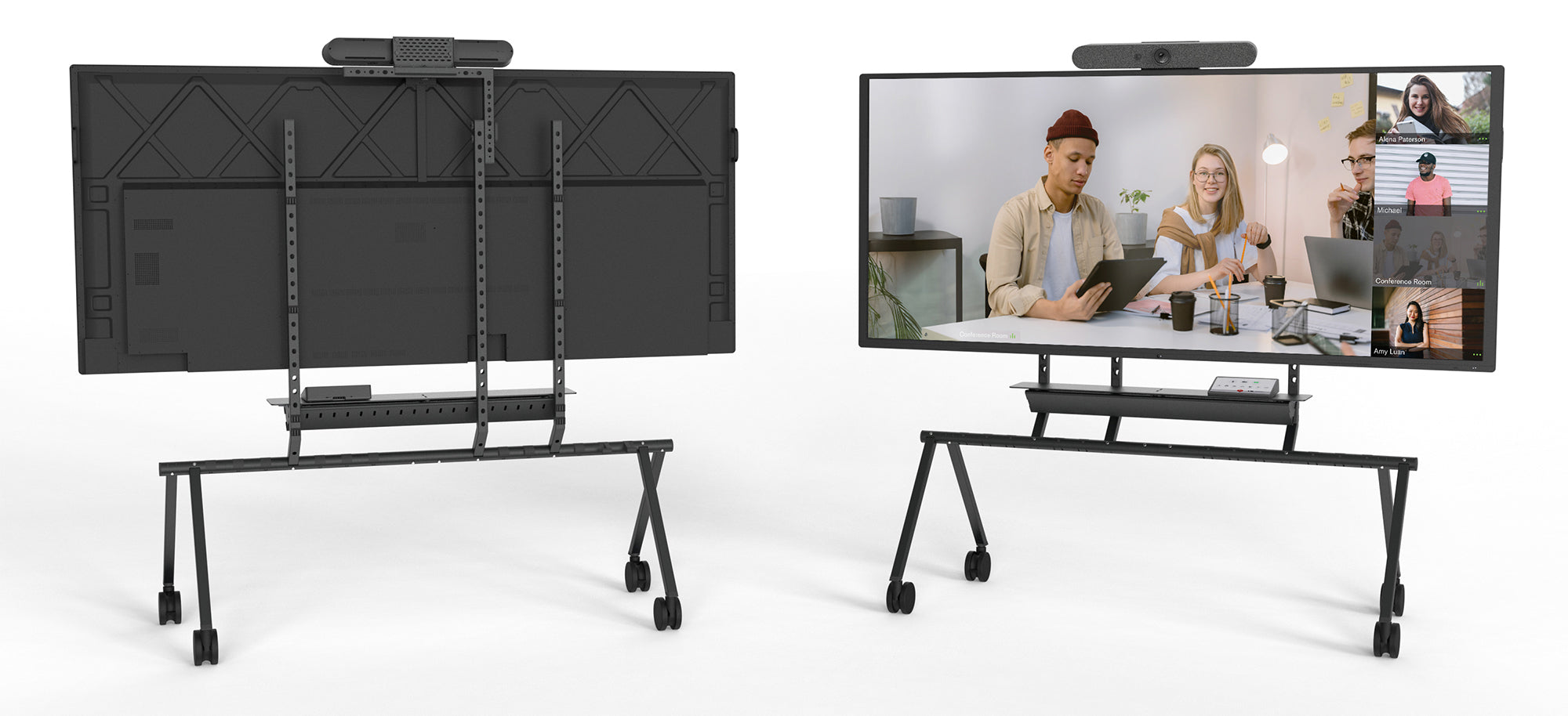 Effortlessly mount displays at an optimal height for any room or setting. With the ability to install most 105-inch displays 42 inches above the floor, this stand supports eye-level camera mounting, ensuring seamless video conferencing experiences.