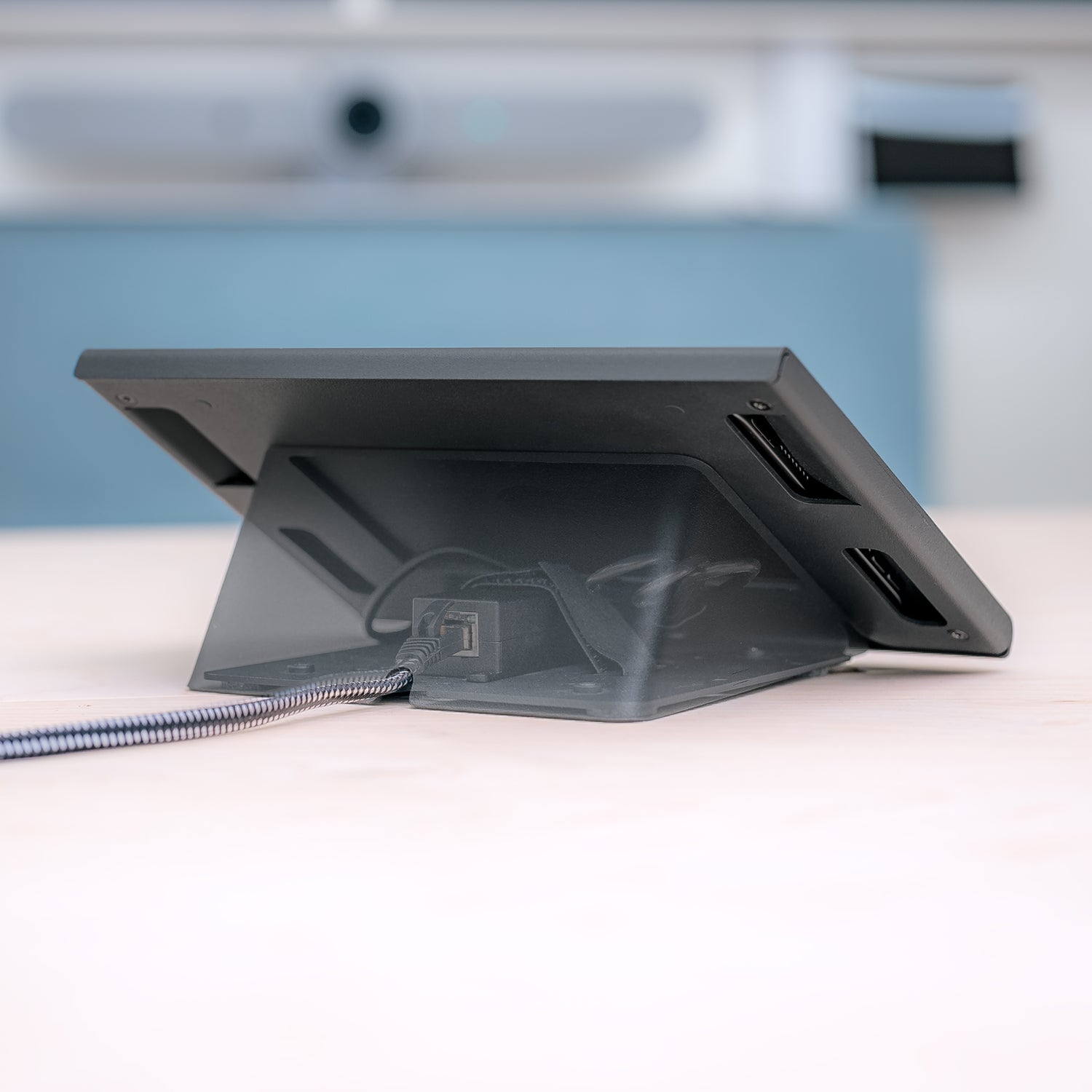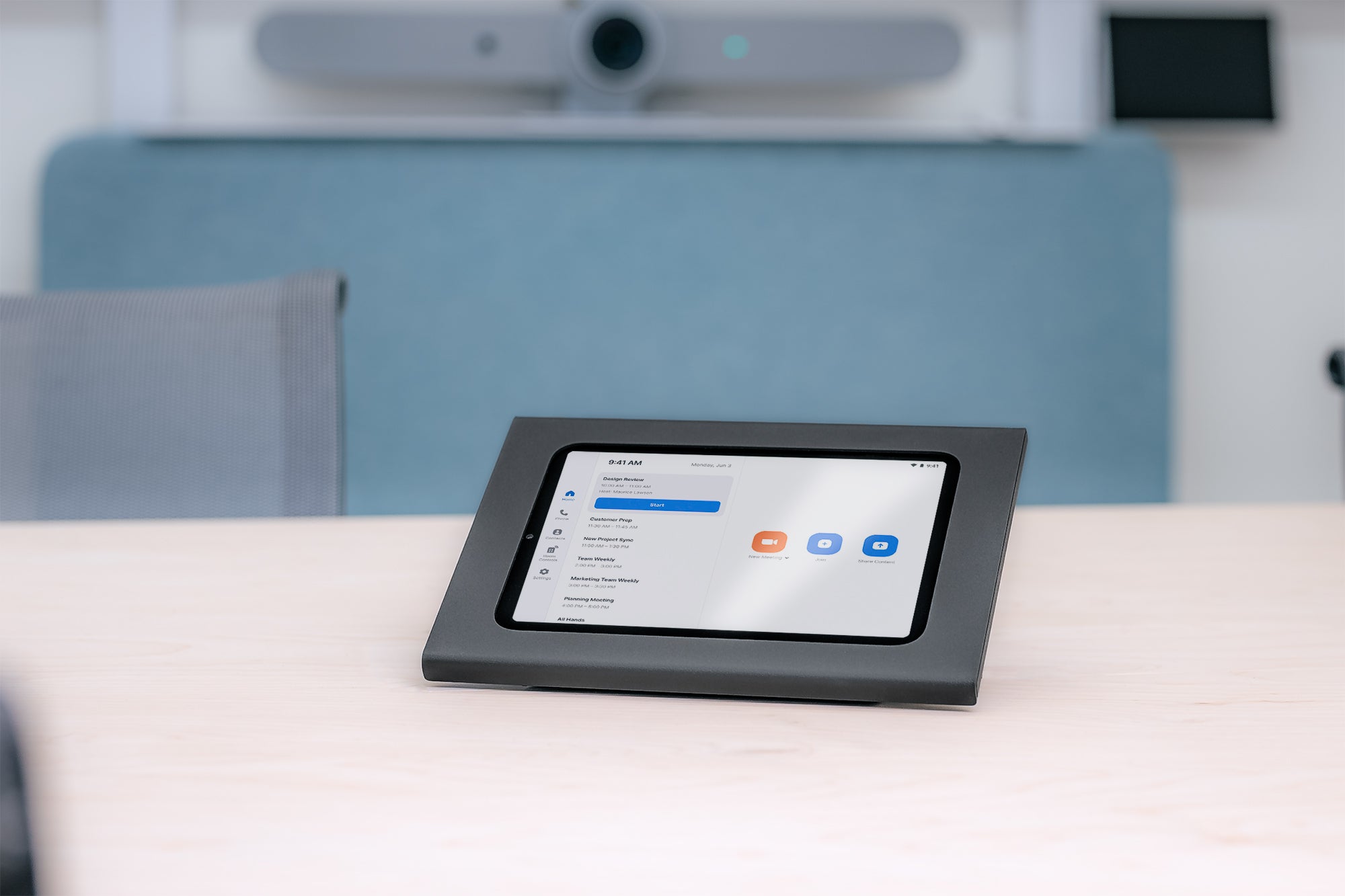 Designed in collaboration with the Zoom team specifically to control Zoom Rooms, this striking hardware enables you to use iPad mini 6th Generation without compromise. Sleek looks, commercial-grade construction, beautiful finish, theft resistance, and optional PoE power with Ethernet networking combine to produce an object you’d be proud to place between your CEO and your biggest client.